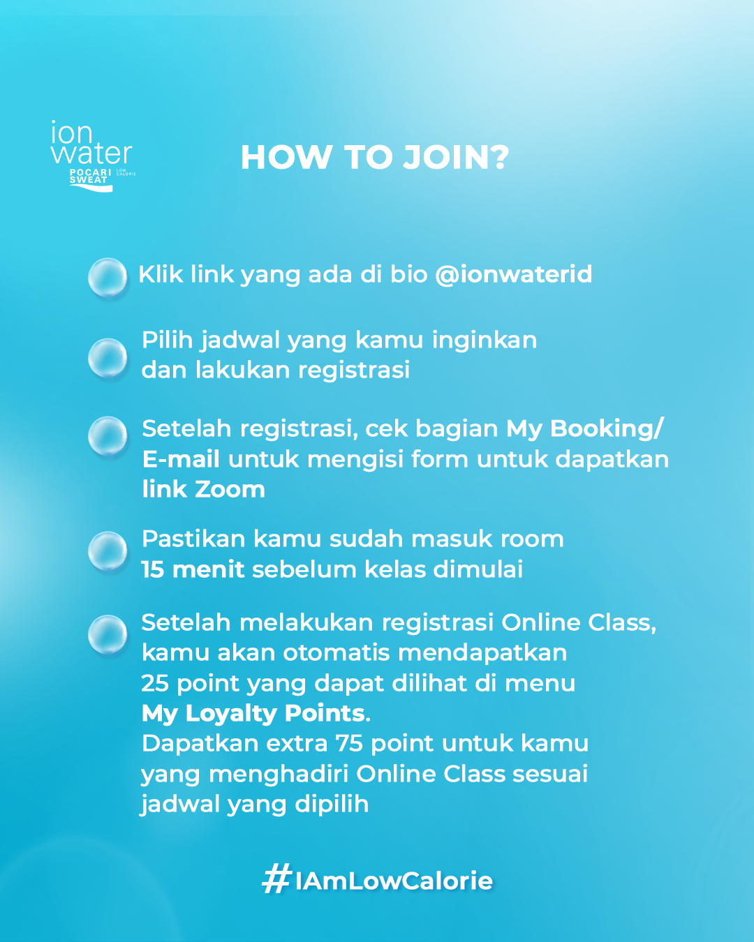 JANGAN LUPA SIAPKAN ION WATER UNTUK MENGHIDRASI KAMU SELAMA KELAS ONLINE